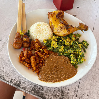 Satu Uluwatu is a great restaurant where you can create your own plate from diverse local and Western dishes. From local favorites to options like kale salad, you’ll find something for every palate. On my plate, for example, I chose a small curry, rice, teriyaki tempeh, and a beetroot salad with quinoa and kale. It’s a great spot to enjoy a mix of flavors. I highly recommend Satu Uluwatu for breakfast, lunch, and dinner.