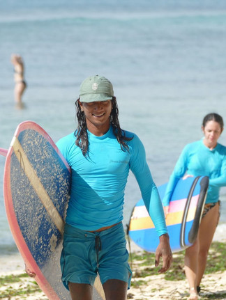 I highly recommend Moana Surf for several reasons. Tysen and Dede (surf instructors) are incredibly fun to surf with while maintaining high professionalism. The instructors not only ensure you feel safe in the water but also fill the classes with lots of laughter and joy. A private surf lesson costs IDR 700,000, and a group lesson costs IDR 500,000.